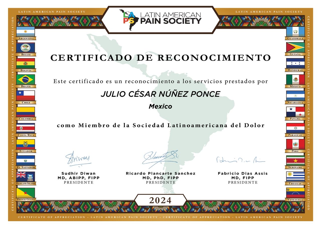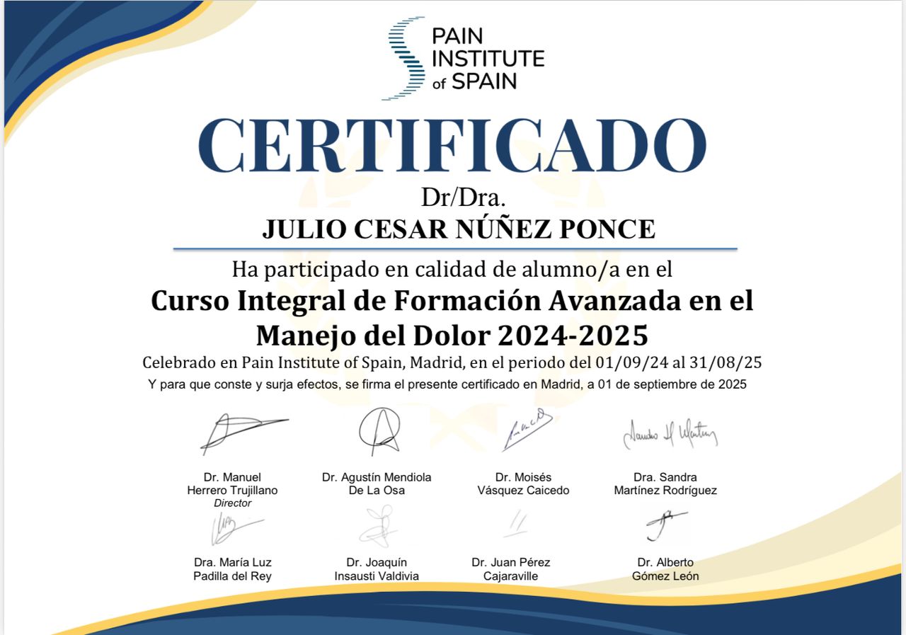 Formado como médico anestesiólogo y posgraduado en tratamiento del dolor, mi práctica está centrada en mejorar la calidad de vida de los pacientes a través del diagnóstico preciso y tratamiento personalizado.